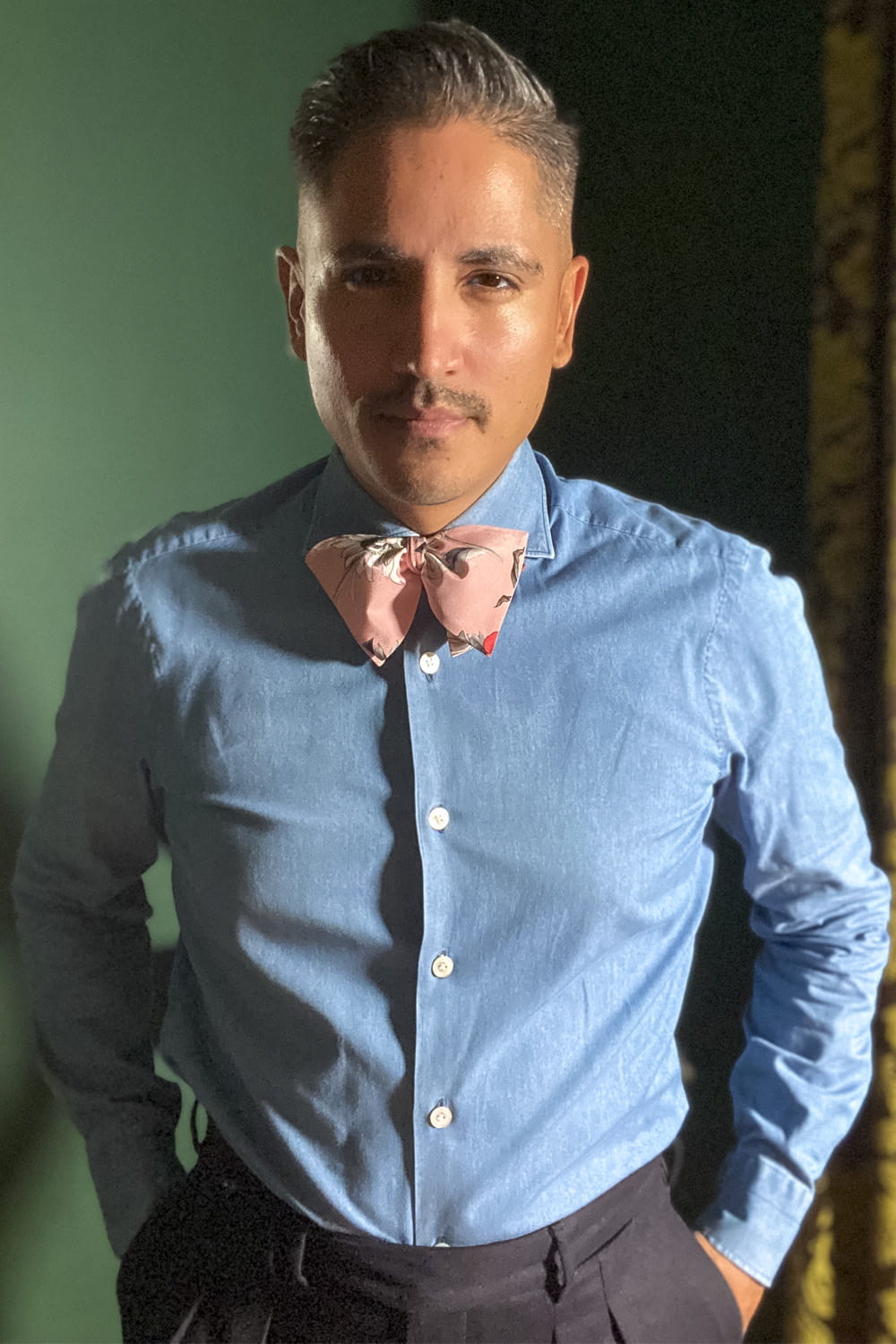 Unable to find luxury bow ties that fit the profile he was looking for; high quality craftsmanship, unique designs, and intricate fabrics, Chris found himself sourcing fabrics and designing his own bows to add to his collection.